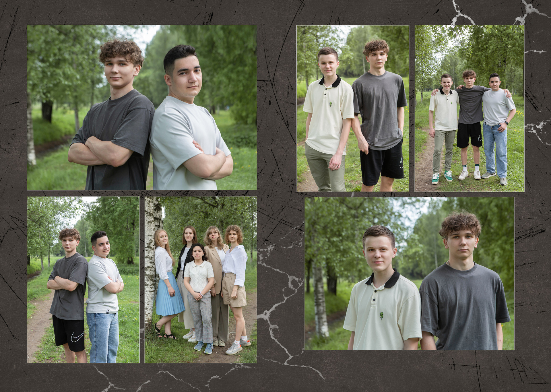 Альбомы верстаются персонально для каждого выпускника, то есть основная часть фотографий в альбоме будет именно с вашим ребенком. Данный подход мне гораздо ближе, чем варианты одинаковых выпускных альбомов.